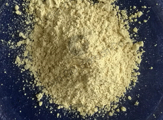 Propiedades: Este producto es un polvo amarillo. Inodoro e insípido. Soluble en benceno, acetona, dicloroetano, disulfuro de carbono, tolueno, ligeramente soluble en etanol y éter, insoluble en gasolina y agua. El almacenamiento es estable.